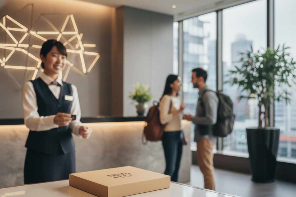 初期費用・在庫リスクなし。客室にQRコードを置くだけで収益が生まれる、ホテル向け宿泊先配送アフィリエイト。ゲストの手ぶら観光を支援し、満足度向上と業務効率化を両立します。